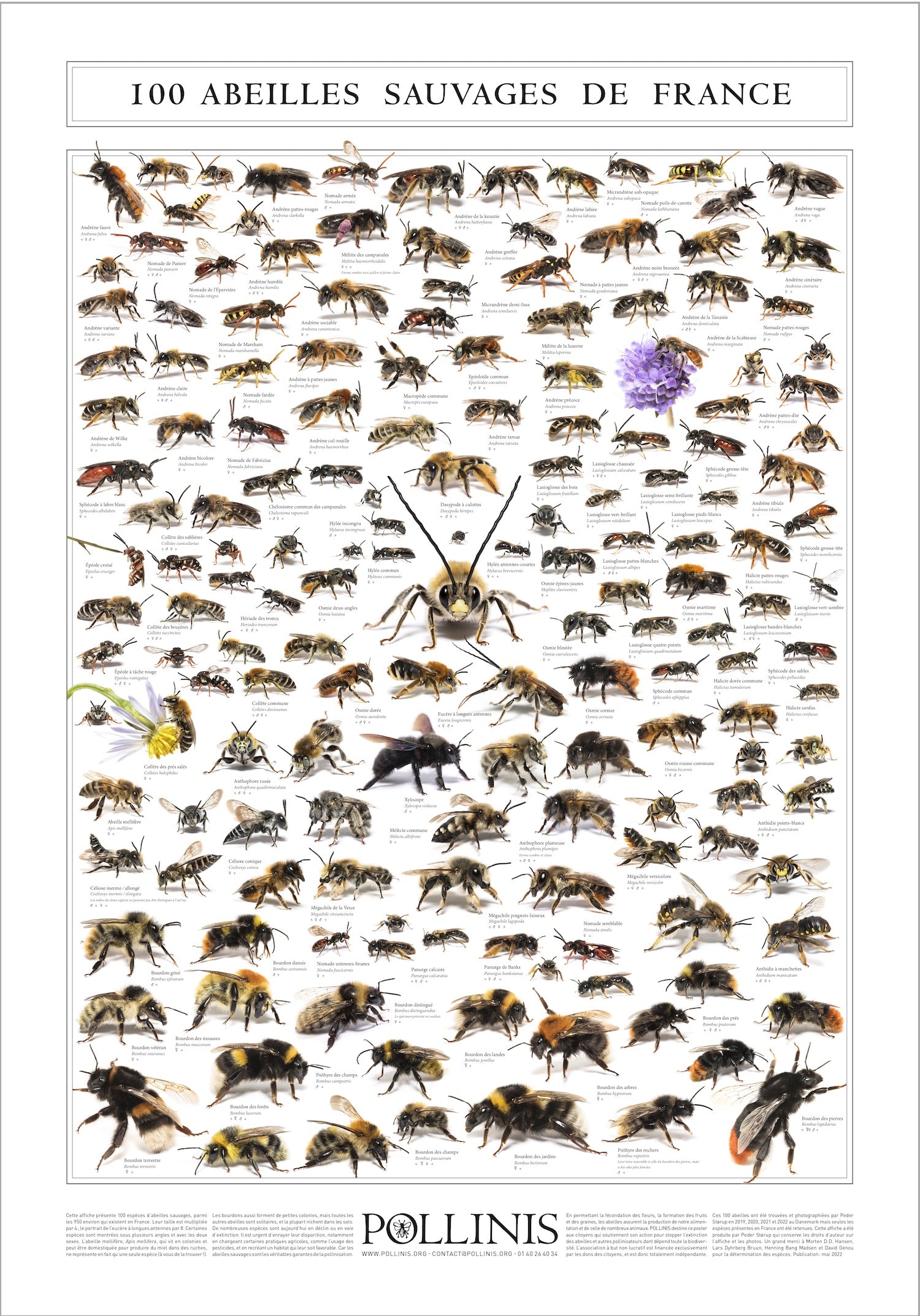 Avec cette grande affiche, découvrez et contribuez à faire connaître 100 espèces d’abeilles sauvages, parmi les 950 environ qui existent en France. Une première étape pour stopper l’extinction en cours des abeilles et des autres pollinisateurs dont dépend toute la biodiversité.